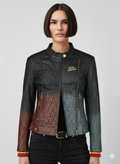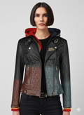 This Halloween Jacket boasts a gradient color combination and is crafted from high-quality and durable leather fabric with a smooth viscose inner lining for ultimate comfort. Its design features a detachable hoodie with buttoned collars, full sleeves with rib-knitted cuffs, a vertical zipper closure, and spacious pockets. The quilted pattern on its front enhances its stylish look. The jacket has a front logo of Daddy's Lil' Monster and a back logo of Joker's Property, making it perfect for fans of the iconic DC character. Ideal for girls who want to add a touch of edginess and style to their wardrobe. Available in both real and faux leather options.